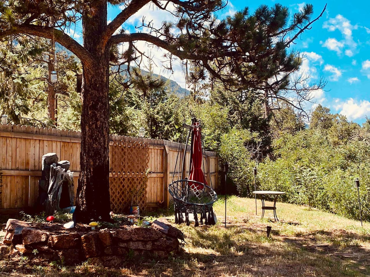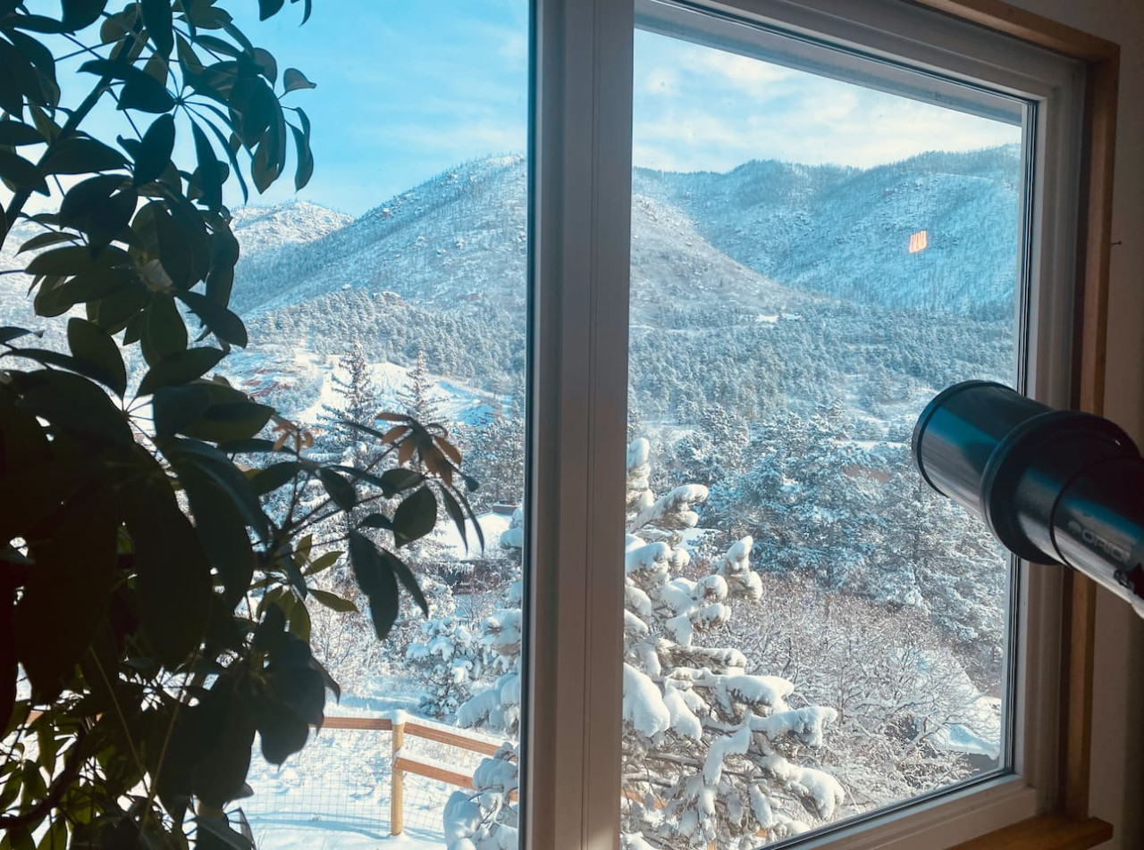 / nightWinnemucca Heights embodies a quiet, romantic getaway in the heart of America. Inspired by my own world travels, this unique rental gives way to remarkable views, eclectic artwork & cozy reading nooks. Ready to experience the snow-capped rockies from your private hot-tub, nestled in a canopy of untouched stars? Whether it be hiking in Pike Nat'l Forest, listening to live music in the funky town of Manitou, or being struck speechless by Garden of the Gods... The mountains are calling; welcome home. Designed by famous architect Elizabeth Wright (Frank Lloyd Wright's granddaughter), this space is unlike any other in Colorado. Enjoy a large front yard with a privacy fence and garden. The back deck has a new, private hot tub, bbq and additional seating so you can enjoy your coffee as the sun rises over the rockies. The open-floor layout includes landscape windows, hardwood floors and a real brick fireplace, as well as, HD tv and other entertainment. Spacious master bedroom includes a king-size, incredibly comfortable bed, along with a dedicated workspace, large tv and walk-in closet. You will constantly be discovering new artwork, practical homeware, and new ways to enjoy your stay! There is a separate guest suite for rent on the property located below you; Winnemucca Spa. You have no shared spaces and the entire listing shown here is private, including all amenities. Please note, both properties are adults only. To rent both listings see; Winnemucca Retreat. Most guests never see each other and many couples ask to extend their stay! You also have access to a private parking spot, a separate entrance, and the entirety of what's shown in this listing. Your entire rental is just for you and all spaces are private. Winnemucca Heights is located in Pike National Forest. Enjoy a walk around the magical lake of Green Mountain Falls, creek-side dining at the Wines of Colorado, or the Blue Moose Tavern for a cold drink. The Pantry offers the best breakfast around and there are unique shops for you to visit. You only need to step out the front door to explore one of the many mountain trails in the area, including a hike to multiple waterfalls. The North Pole is located just down the road, or take a drive up the 14,000 foot mountain, Pikes Peak, one of the only fourteeners in Colorado that you can drive to the summit! A 15 minute drive will take you to Manitou, one of the most unique towns in Colorado, where you can find the penny arcade, tons of restaurants and shopping options, and even enter the Garden of the Gods, a must see in Colorado. If you enjoy wild-life, I highly recommend the wolf rescue sanctuary. 4 wheel drive recommended during winter months (October - May). Taxis are also available or Ubers from Colorado Springs. The closest Ski slopes are 1.5 hours away, (Breckenridge & Copper Mountain) an absolutely stunning drive! I cater to romantic getaways… if you have any special requests, please let me know!