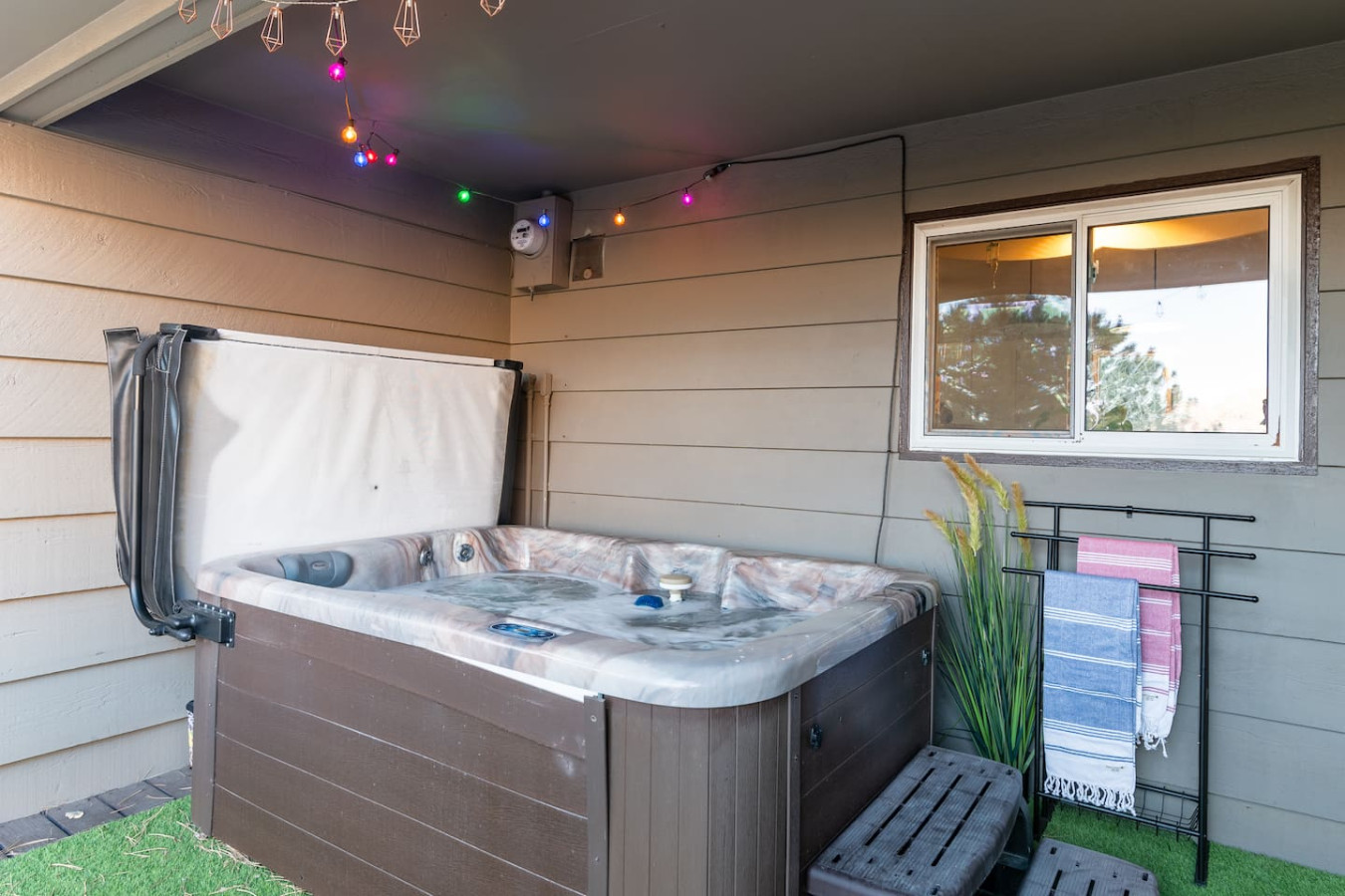 May 2025 4.00Kyla’s place is uniquely decorated, with extra comforts like toiletries, food items, books, and records. It has a pretty Mountain View and is close to towns and activities but also in a quiet area. Be aware that the downstairs is available to other guests with a separate entrance. We sometimes heard them but it wasn’t disturbing. The hot tub was extra foamy when we used the jets. Kyla came to check on it within 15-30 minutes of my message and followed up the next day too. She is very responsive and accommodating.